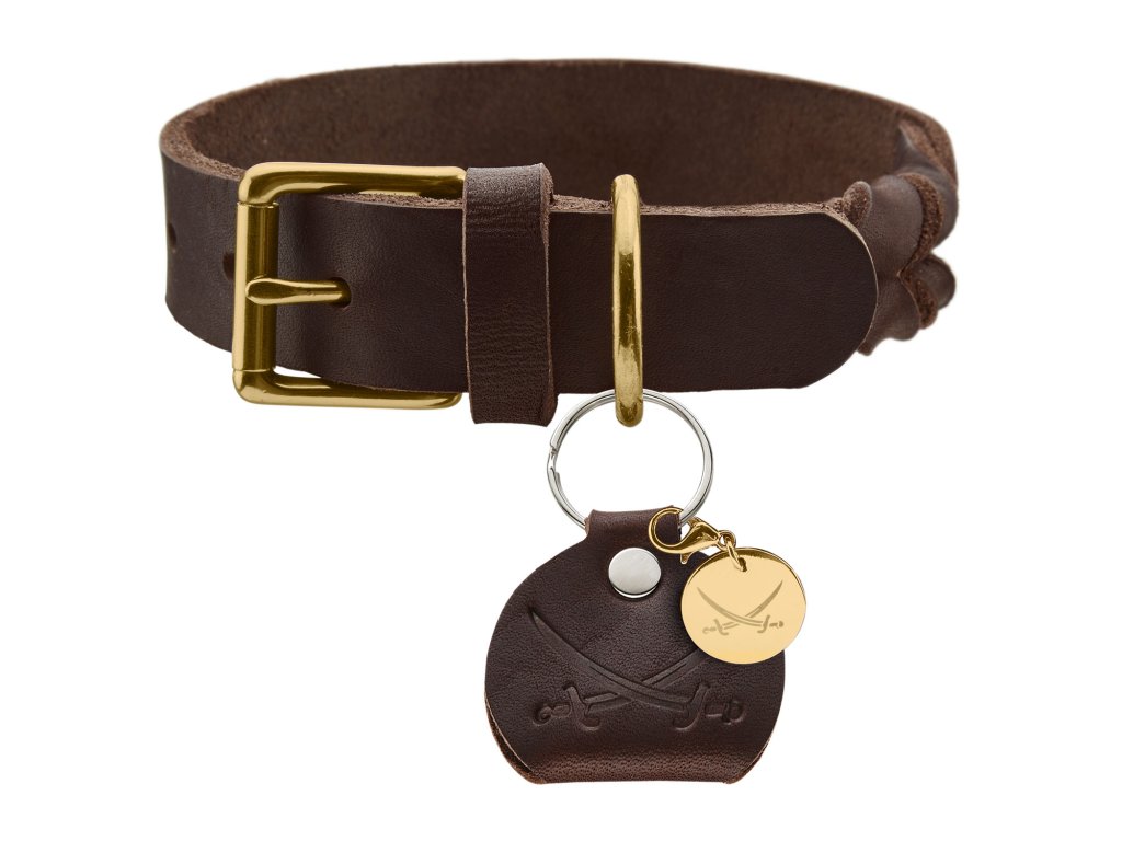 Kožený obojek pro psa Hunter Sansibar Solid s přívěskem - tmavě hnědý
